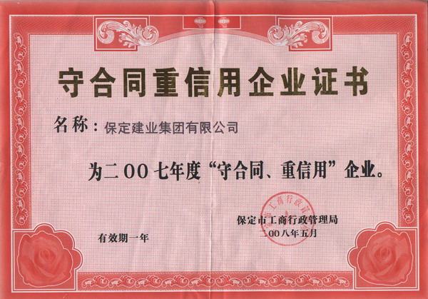 2007年河北省先進(jìn)建筑施工企業(yè)