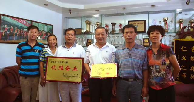 2009年8月12日上午,保定市總工會有關(guān)領(lǐng)導(dǎo)親臨我集團公司,為我集團公司頒發(fā)河北省“安康杯”競賽活動優(yōu)勝企業(yè)獎牌,為集團公司董事長張?zhí)m柱同志頒發(fā)全國“安康杯”競賽活動優(yōu)秀組織者證書。這是我集團公司繼榮獲河北省“AAA級勞動關(guān)系和諧單位”后,獲得的又一殊榮,標志著我集團公司安全管理工作邁上了新臺階。