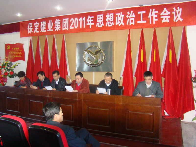 2011年3月8日,保定建業(yè)集團(tuán)有限公司2011年思想政治工作會(huì)議在莊嚴(yán)的國(guó)歌聲中拉開了序幕,會(huì)議由黨委辦公室主任馬亞軍主持,集團(tuán)各公司黨、政、工、團(tuán)、婦、武裝、保衛(wèi)負(fù)責(zé)人參加會(huì)議。